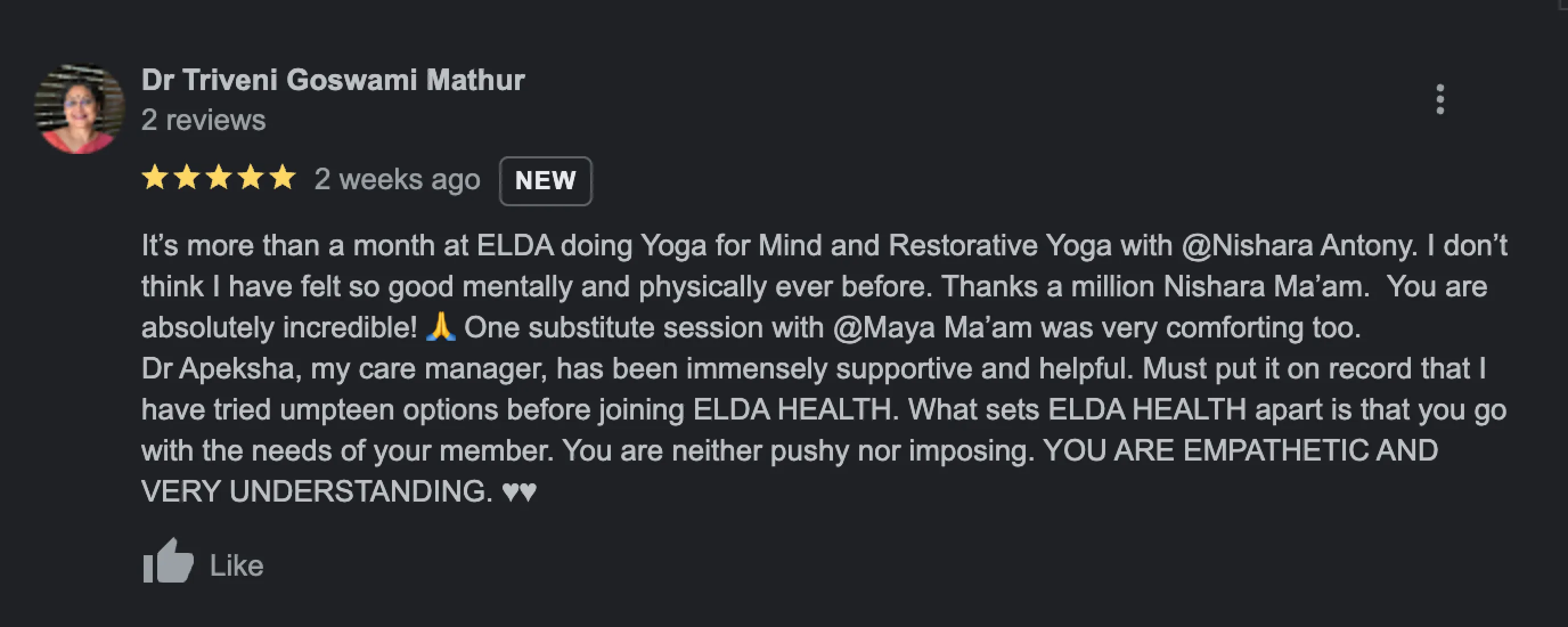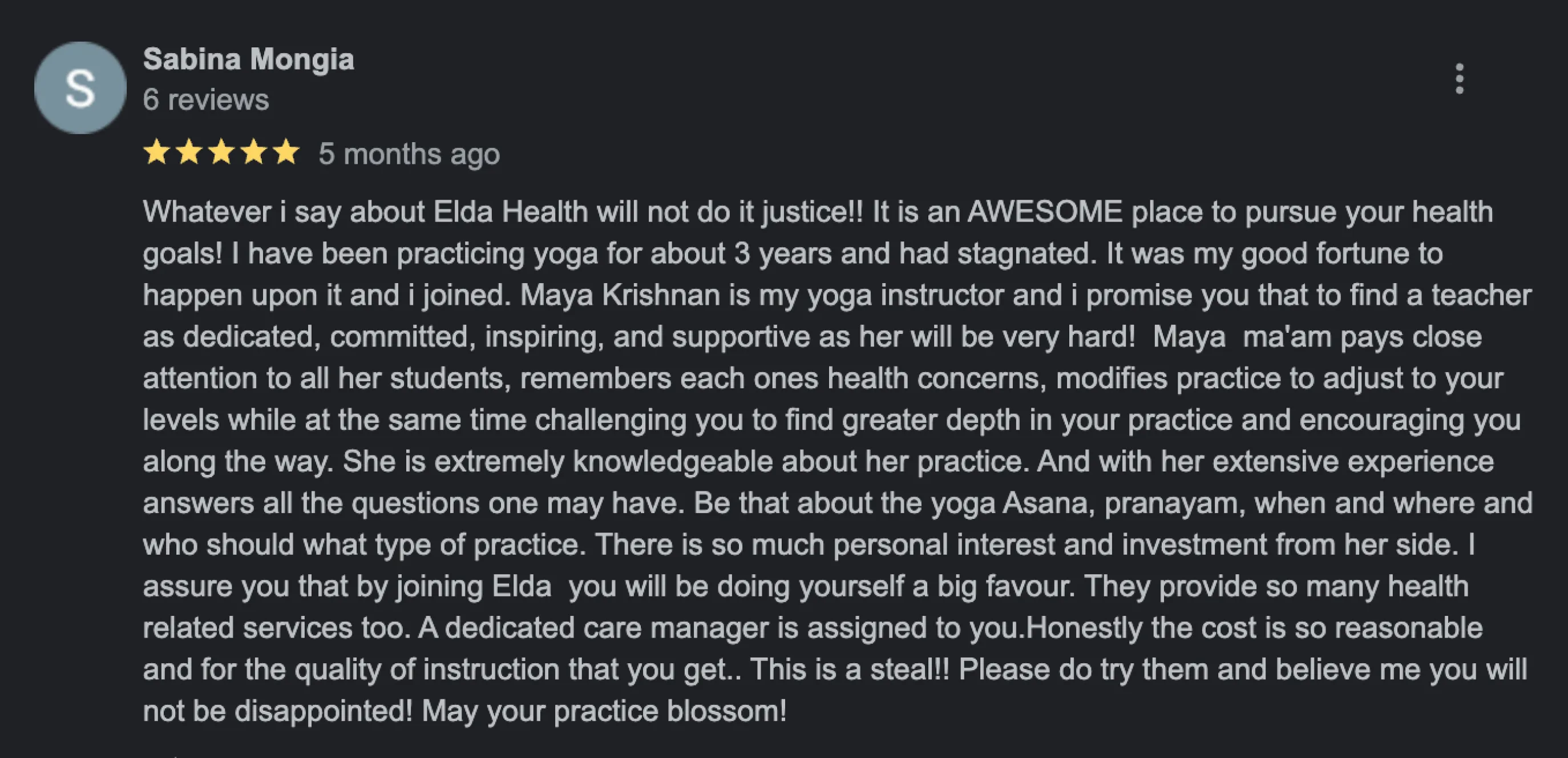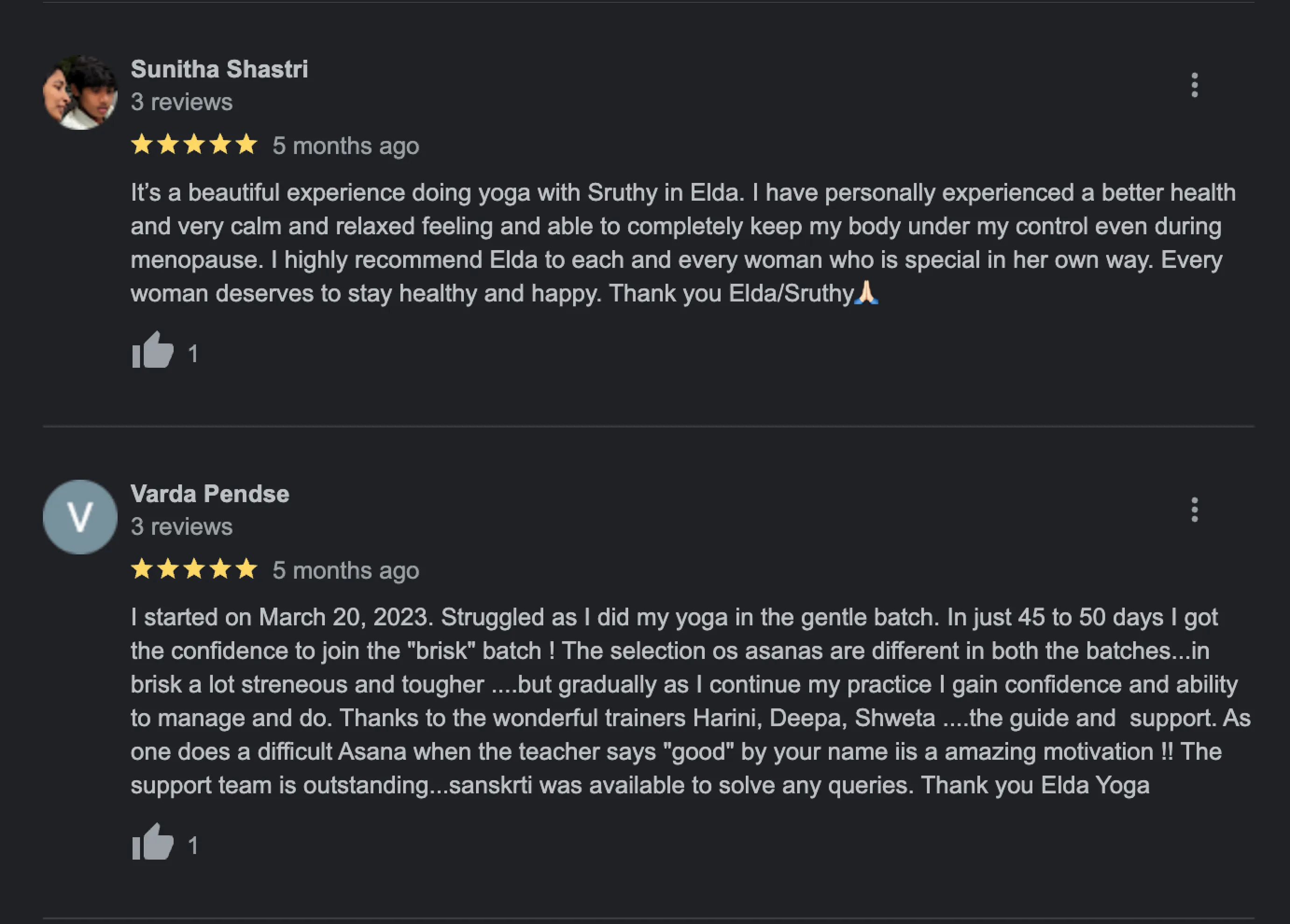 Elda Yoga for Menopause offers 60-minute virtual sessions conducted via Gmeet. You can join the sessions from the comfort of your own home through our website or the Elda App. This virtual format provides the flexibility and convenience you need to participate in the program.